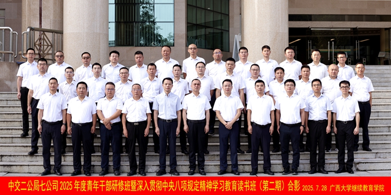 7月28日,中交二公局第七工程有限公司2025年度青年干部研修班暨深入贯彻中央八项规定精神学习教育读书班(第二期)在我校开班。中交二公局第七工程有限公司党委副书记、总经理宁波,广西大学万象城网页版院长闭富春出席开班式并讲话,中交二公局第七工程有限公司人力资源部经理孙超主持开班式。