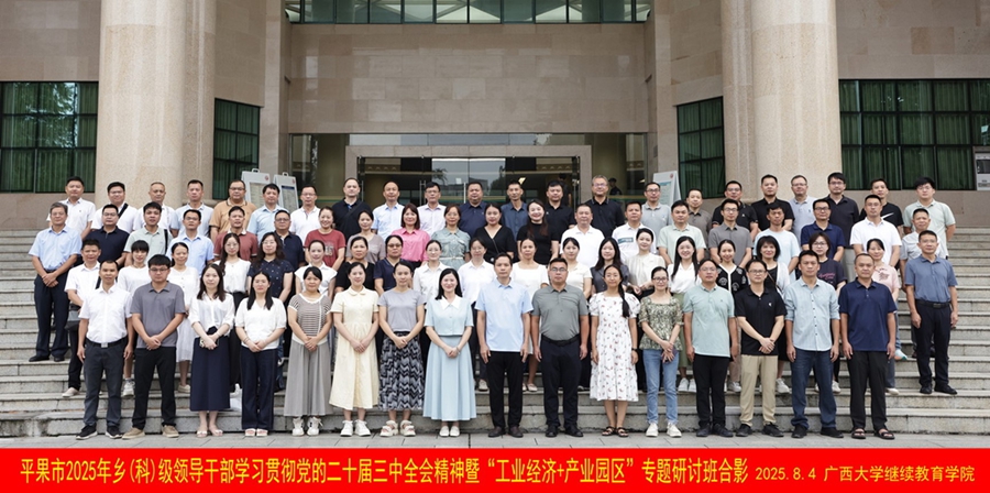 8月4日,平果市2025年乡(科)级领导干部学习贯彻党的二十届三中全会精神暨“工业经济+产业园区”专题研讨班在我校开班。中共平果市委组织部部务会成员、市党员教育中心主任陆香兰,广西大学万象城网页版干部培训中心李文副主任出席开班式并讲话。