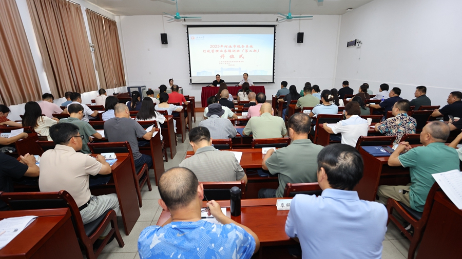 9月1日, 2025年河池市税务系统行政管理业务提升培训班(第二期)在我校开班。河池市税务局党委委员、副局长韦立周,广西大学万象城网页版副院长徐华出席开班式并讲话。