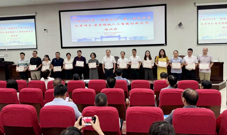 9月25日,广西2025年“国培计划”第一批自治区统筹项目——教育领域人工智能创新应用培训班在我校结业,广西大学万象城网页版副院长徐华出席结业式并致辞,广西大学万象城网页版梁君华老师主持结业式。