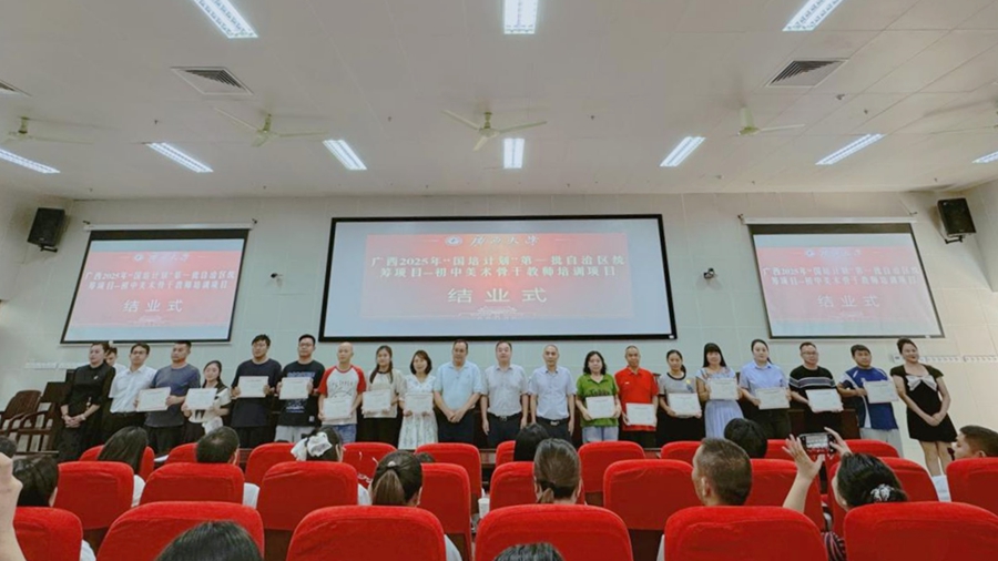 “国培计划”是落实《教育强国建设规划纲要(2024—2035年)》的重大实践。9月24日,由广西壮族自治区教师培训中心主办,广西大学承办的广西2025年“国培计划”第一批自治区统筹项目——初中美术骨干教师培训班在我校结业,广西大学万象城网页版副院长徐华出席结业式并讲话,广西大学万象城网页版梁君华老师主持结业式。