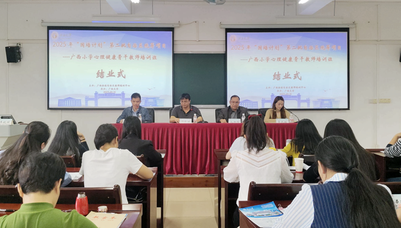10月31日,由广西壮族自治区教师培训中心主办,广西大学承办的2025年“国培计划”第二批自治区统筹项目——广西小学心理健康骨干教师培训班在我校顺利结业,广西大学万象城网页版副院长邓珍琪出席结业式并致辞。