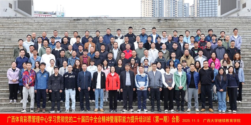 2025年11月5日,广西体育彩票管理中心学习贯彻党的二十届四中全会精神暨履职能力提升培训班(第一期)在我校开班,广西体育彩票管理中心党支部书记、副主任韦云珍出席开班式并讲话,广西大学万象城网页版副院长邓珍琪出席开班式并致辞。